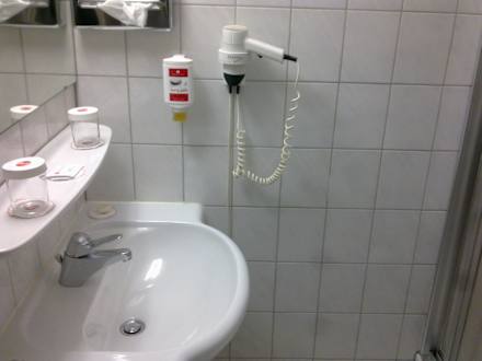 Das Bad, sauber aber etwas älter.