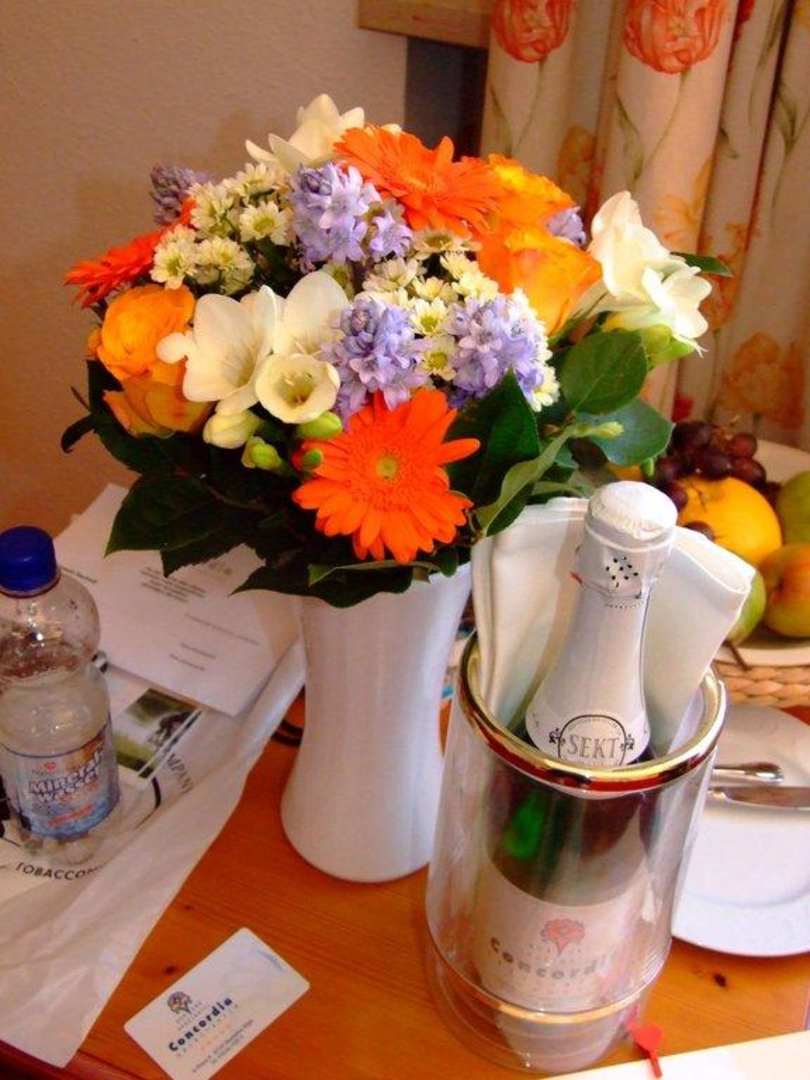 Gruß vom HotelBlümchen von mir-Sekt und Geburtstagskarte vom Hotel.Toll gemacht und zusätzliche Überraschung.
