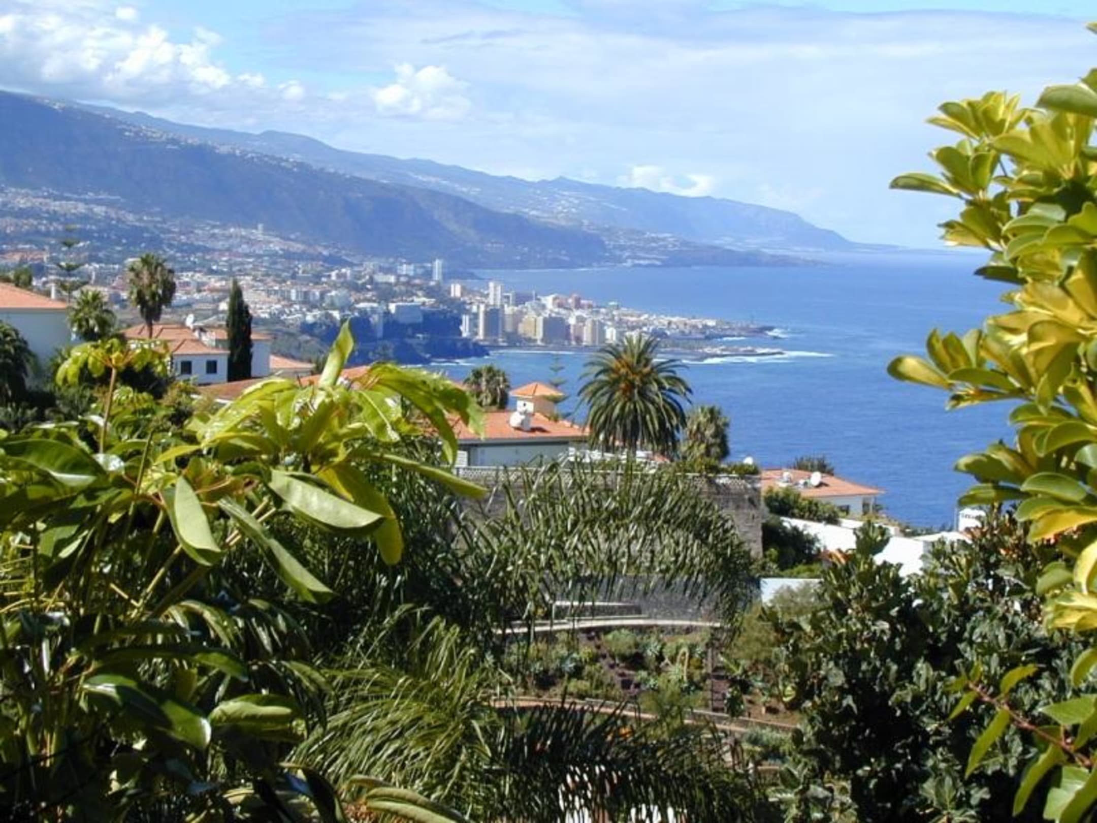 Nordküste Teneriffa: Von La Quinta Park Suites blickt man auf Puerto de la Cruz und auf den Teide. Sehr gepflegte Anlage. Foto entstand Mitte Februar 2004 (23 ° C)