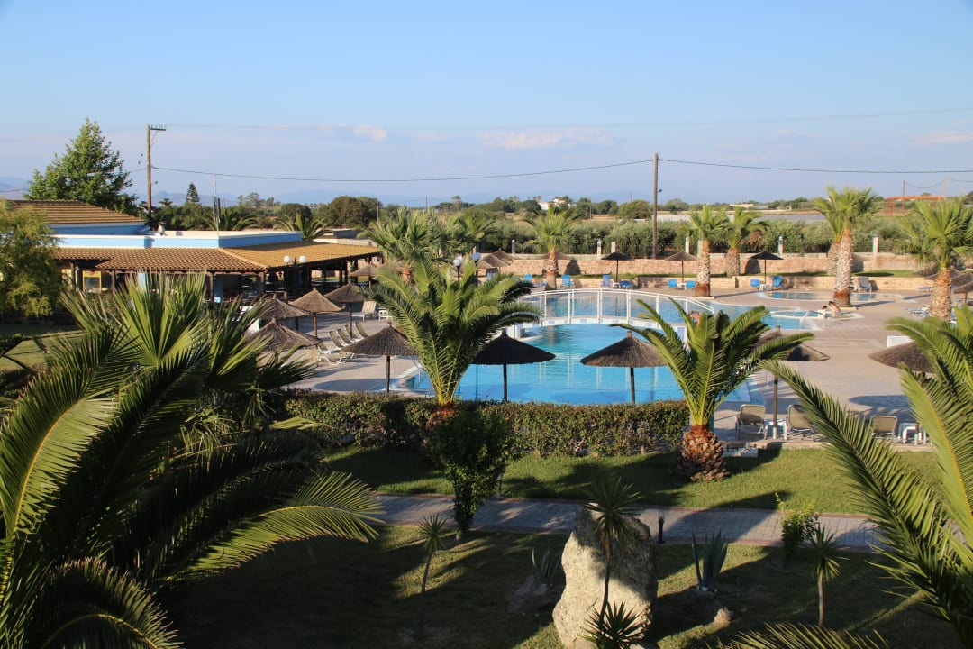 Blick vom Zimmer auf die Poolanlage