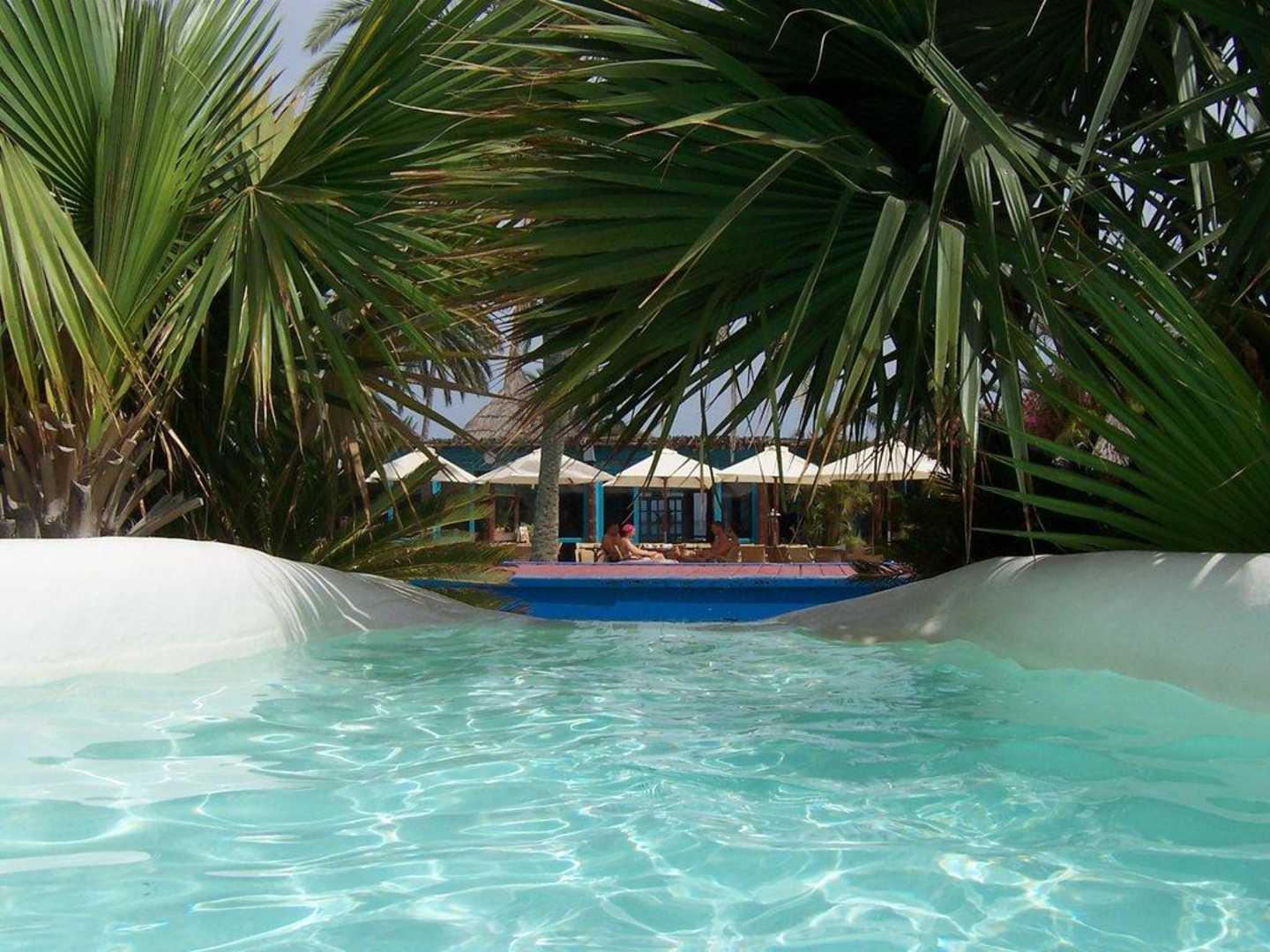 Blick aus dem 3. Becken mit einer kleinen Rutsche
