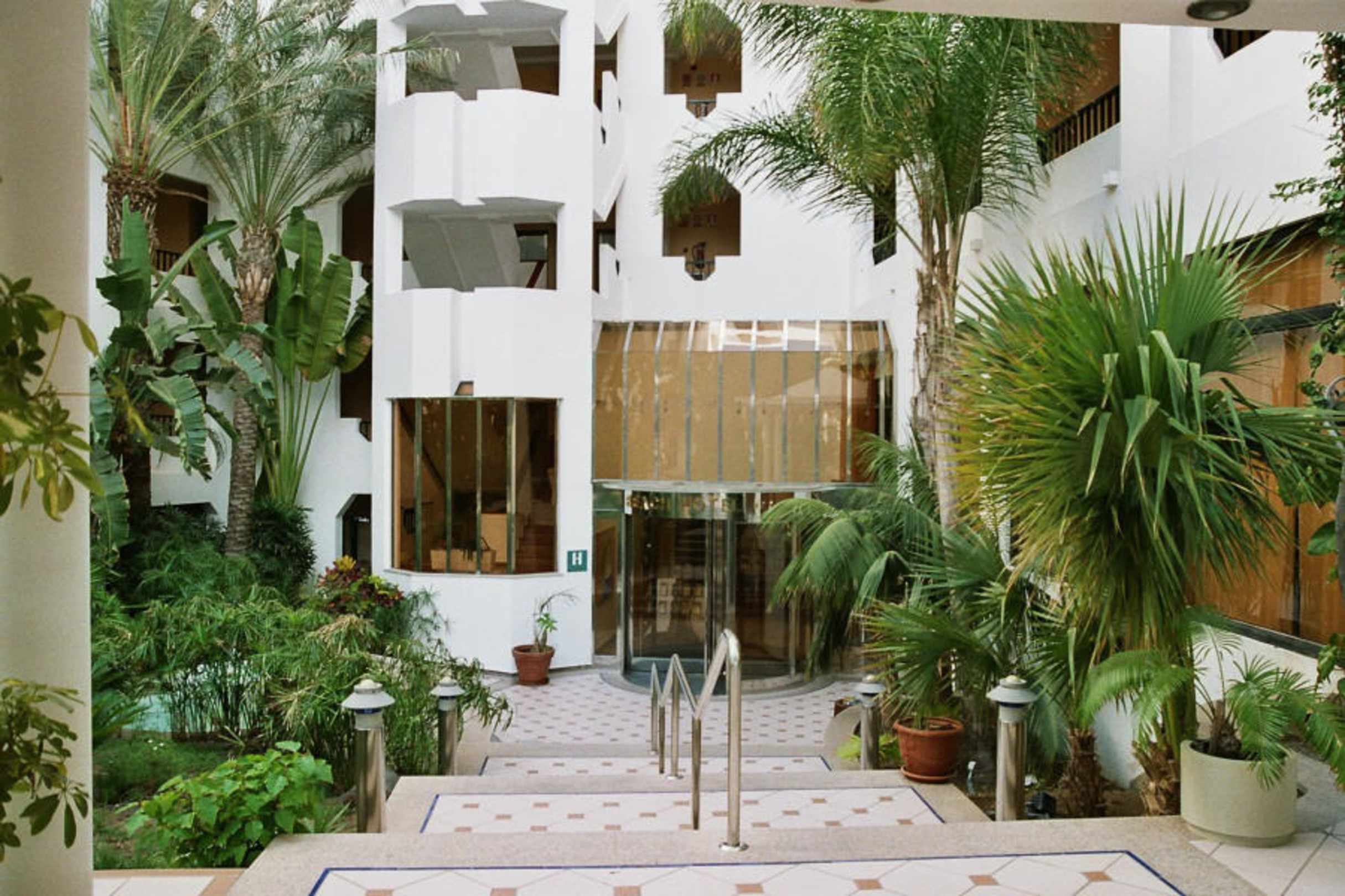 Hoteleingang...schön gestalteter Eingang mit vielen großen Palmen.