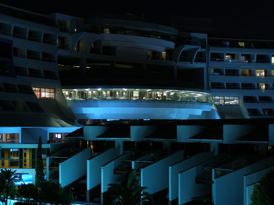 Hauptrestaurant von außen bei Nacht