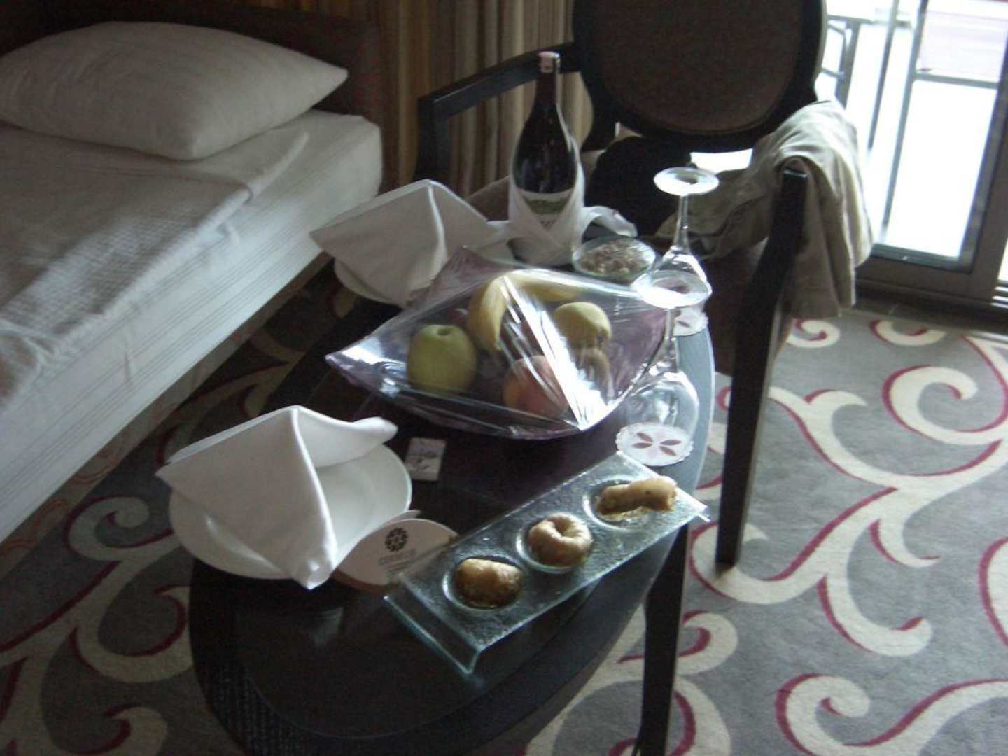 Obst und Wein bei Ankunft auf dem Zimmer