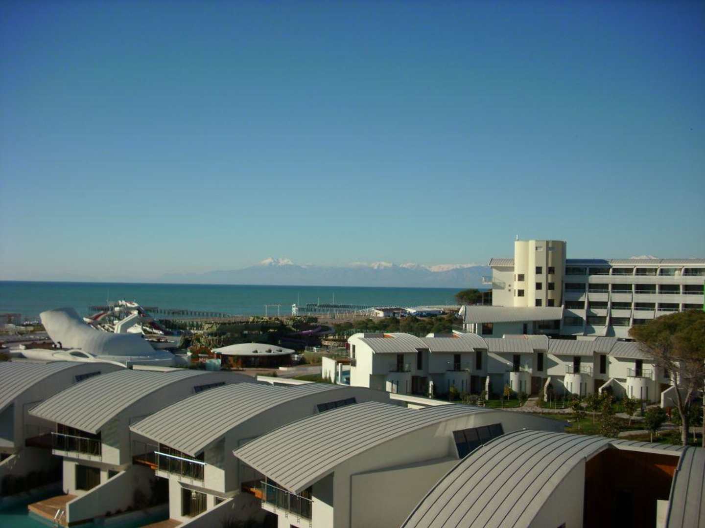Blick über das Meer und Taurus mit Schnee