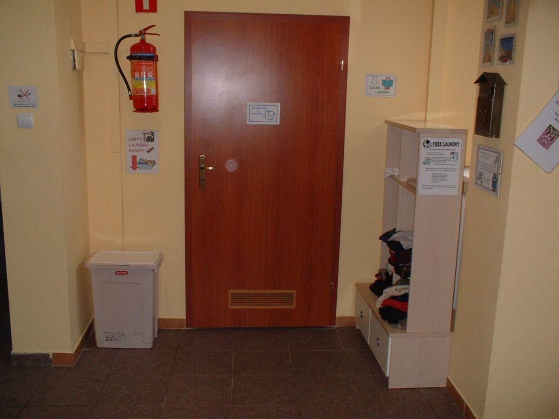 In den Wäschekorb kommt die "Dirty Laundry" rein, die kostenlos gewaschen wird. Die Türe führt zu einer Behinertentoilette und überall sind auch "Rauchen verboten" Schilder, was ich total super fand...