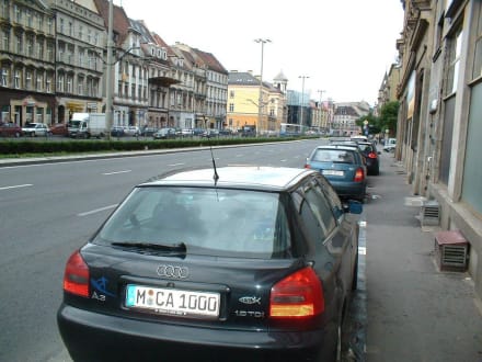 Parkplätze vorm HostelHier zu sehen mein Auto auf einem der wenigen Parkplätze direkt vorm Hostel. Man parkt auf dem extrabreiten Gehweg.