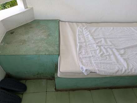 Dieses Bild zeigt den Balkon mit der Liege und den Verschmutzungen !