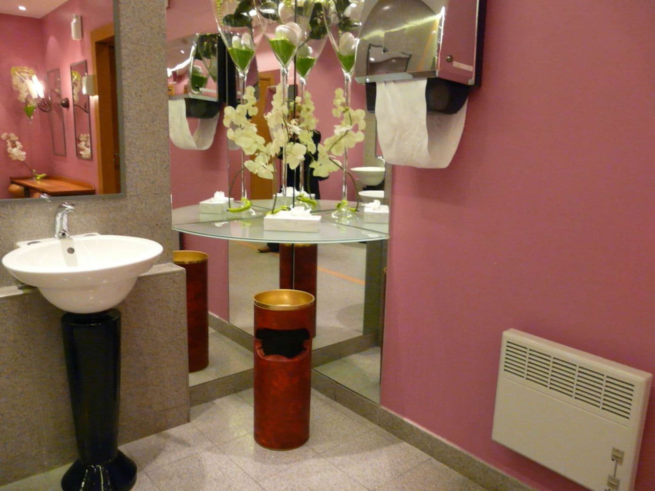 Dans les toilettes pour damesÇa c'est le lavabo avec de décoration dans les toilettes pour dames.