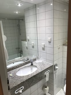 Das Badezimmer, in der Buchung hatte ich mir im Kommentar gewünscht, dass ich gern eine Badewanne hätte, und das hab ich auch bekommen. Ansonsten ist das Badezimmer recht klein, aber völlig ausreichend.