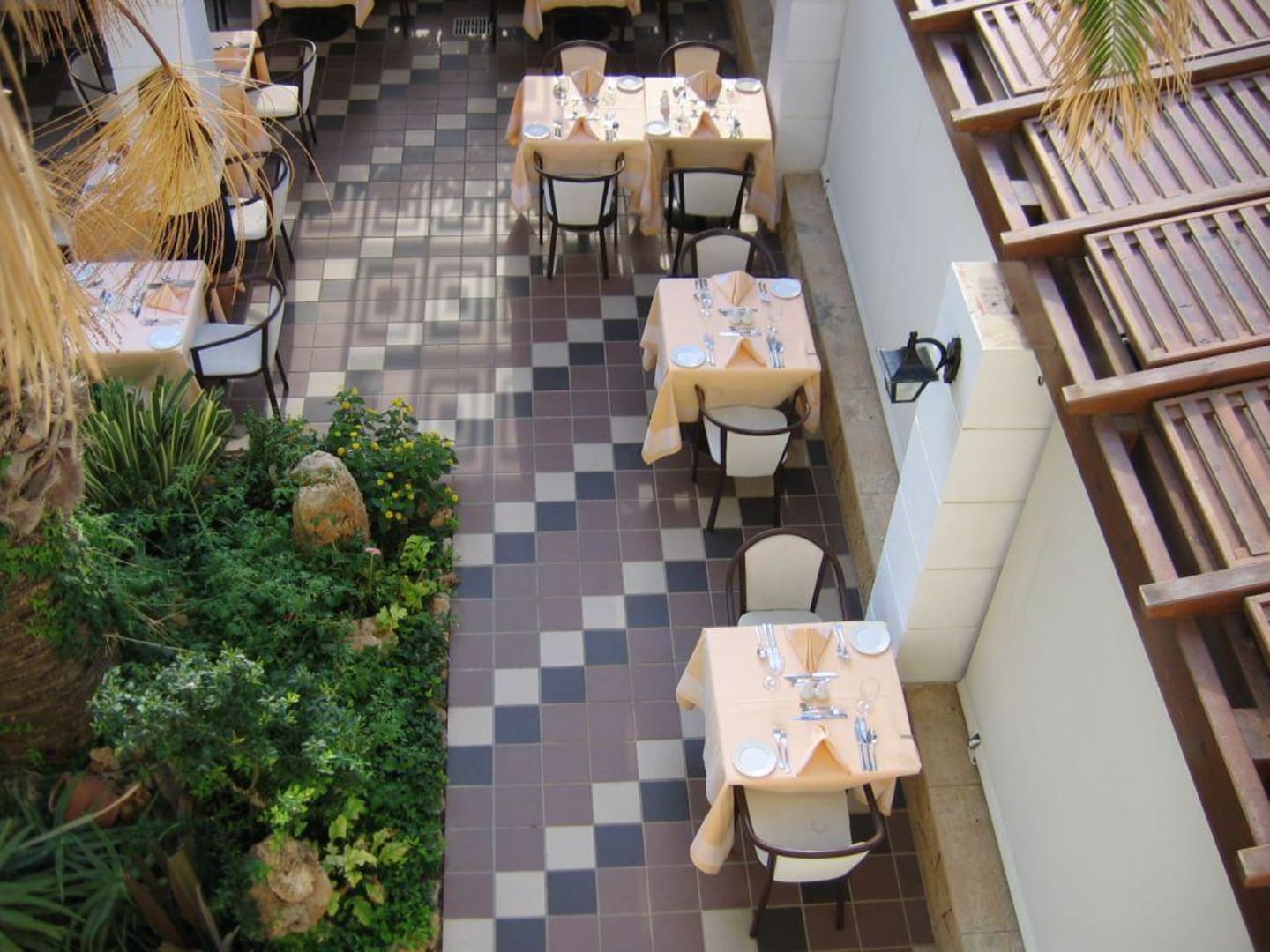 Blick auf die Terrasse des Hauptrestaurants