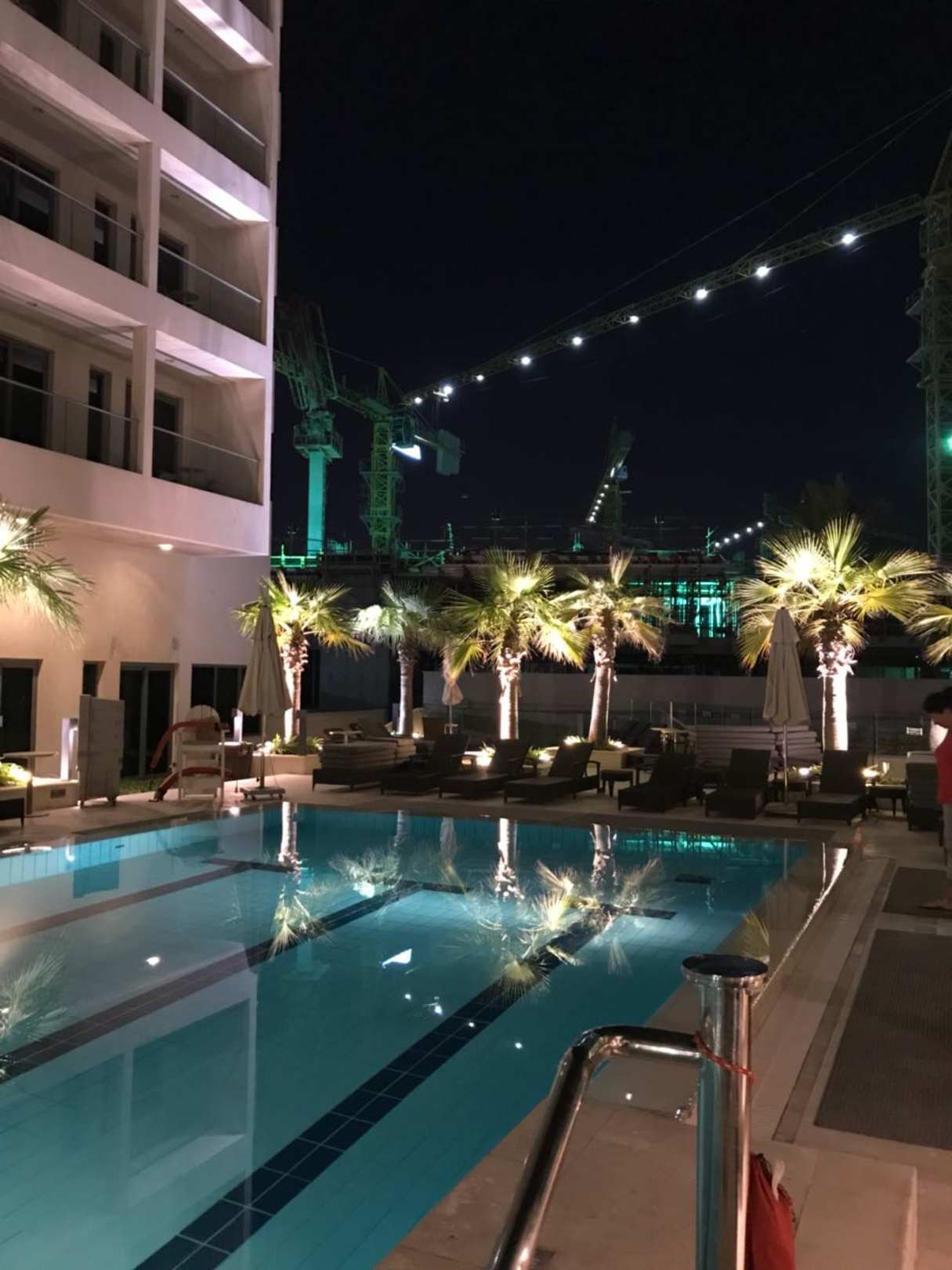 Was so schön aussieht im Hintergrund ist leider ein Kran der am Tage die Poollandschaft vollkommen macht ?