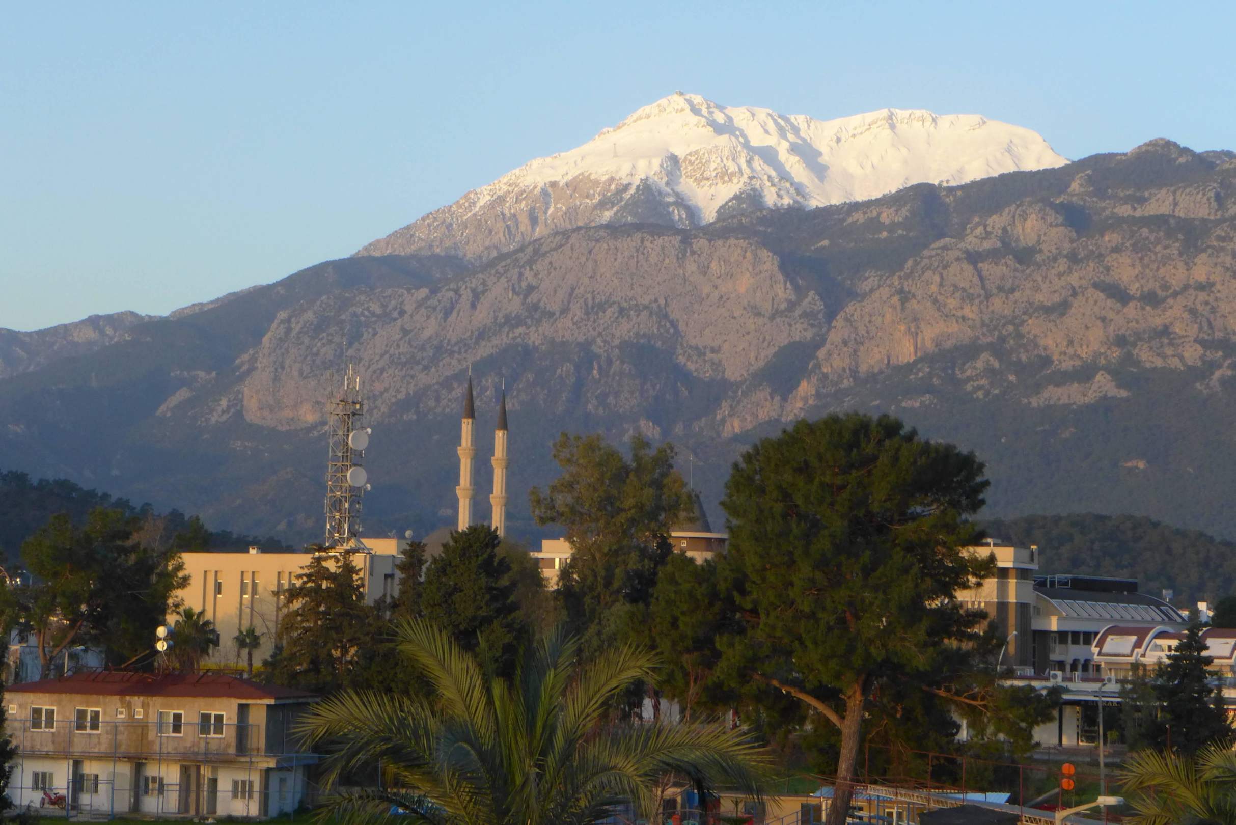 Blick aus dem Zimmer auf den Ort und das Gebirge