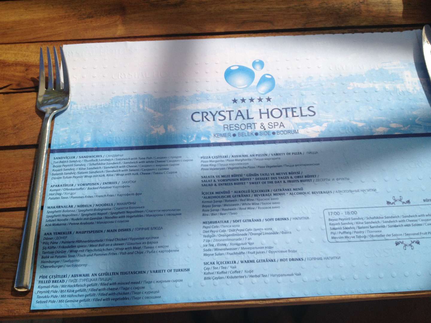 Mittagskarte beim Snack Restaurant