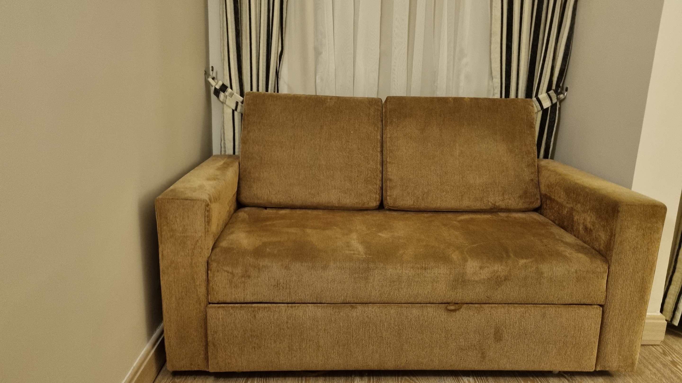 Schlafsofa ist etwas alt und abgenutzt. Lädt nicht zum Hinsetzen ein.
