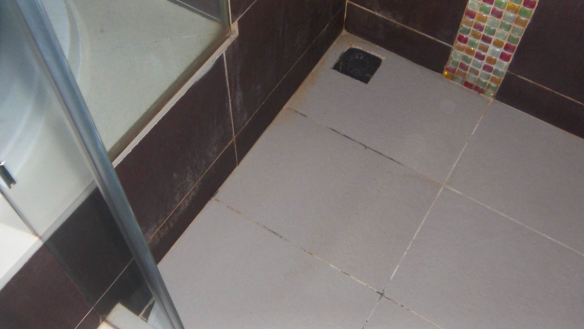 Ansichten einer DuscheDie Fugen der Bodenfließen (Dusche) zeigten Farbtöne, die man eigentlich nur in der Phantasie erahnen kann.
