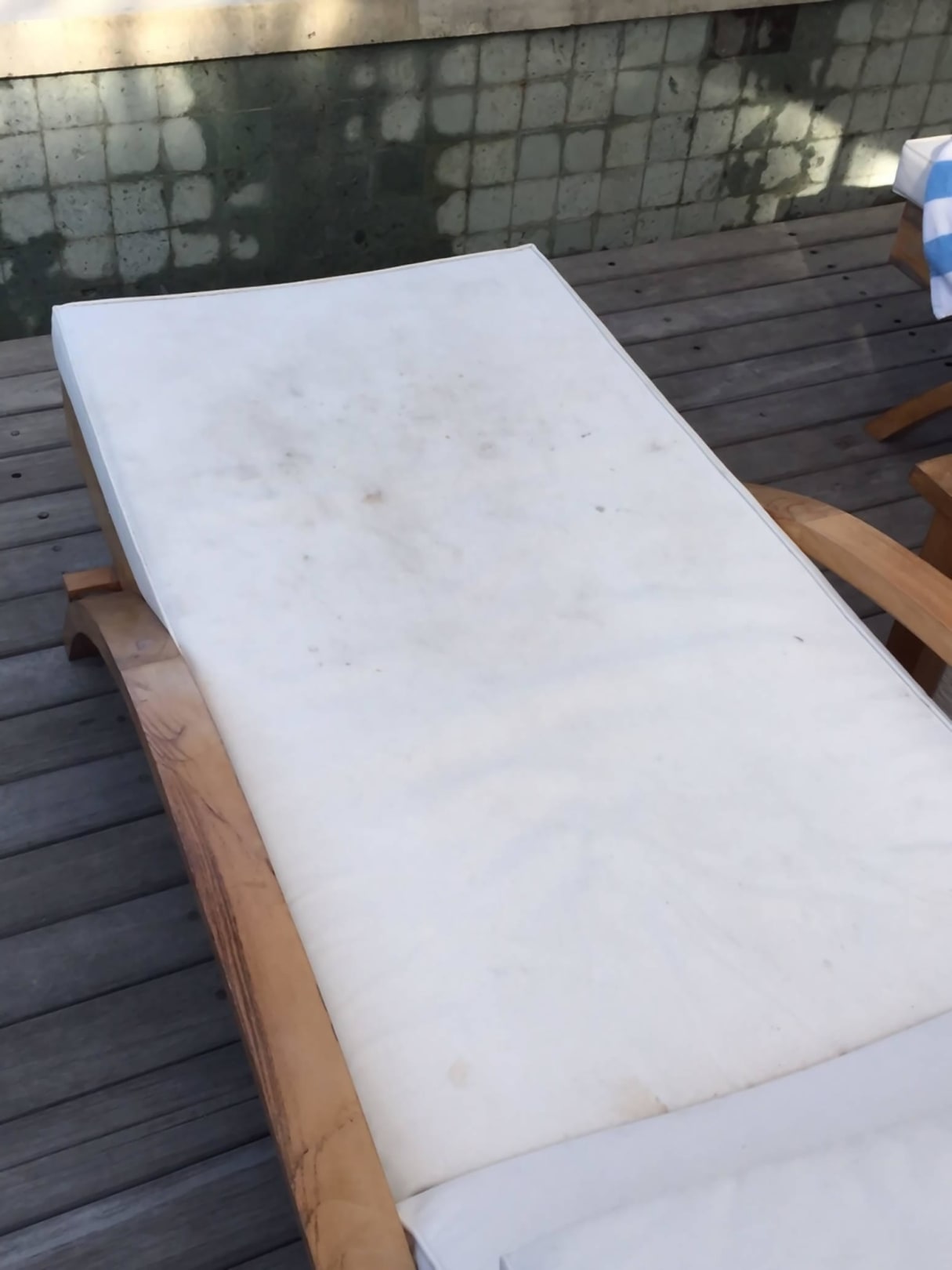 Fleckige Liegen am Pool