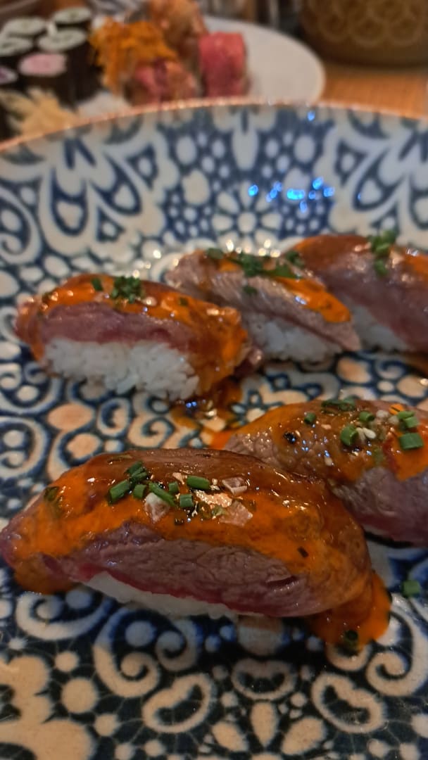 Dienstags gibt es Sushi, hier flambiertes Wagyu