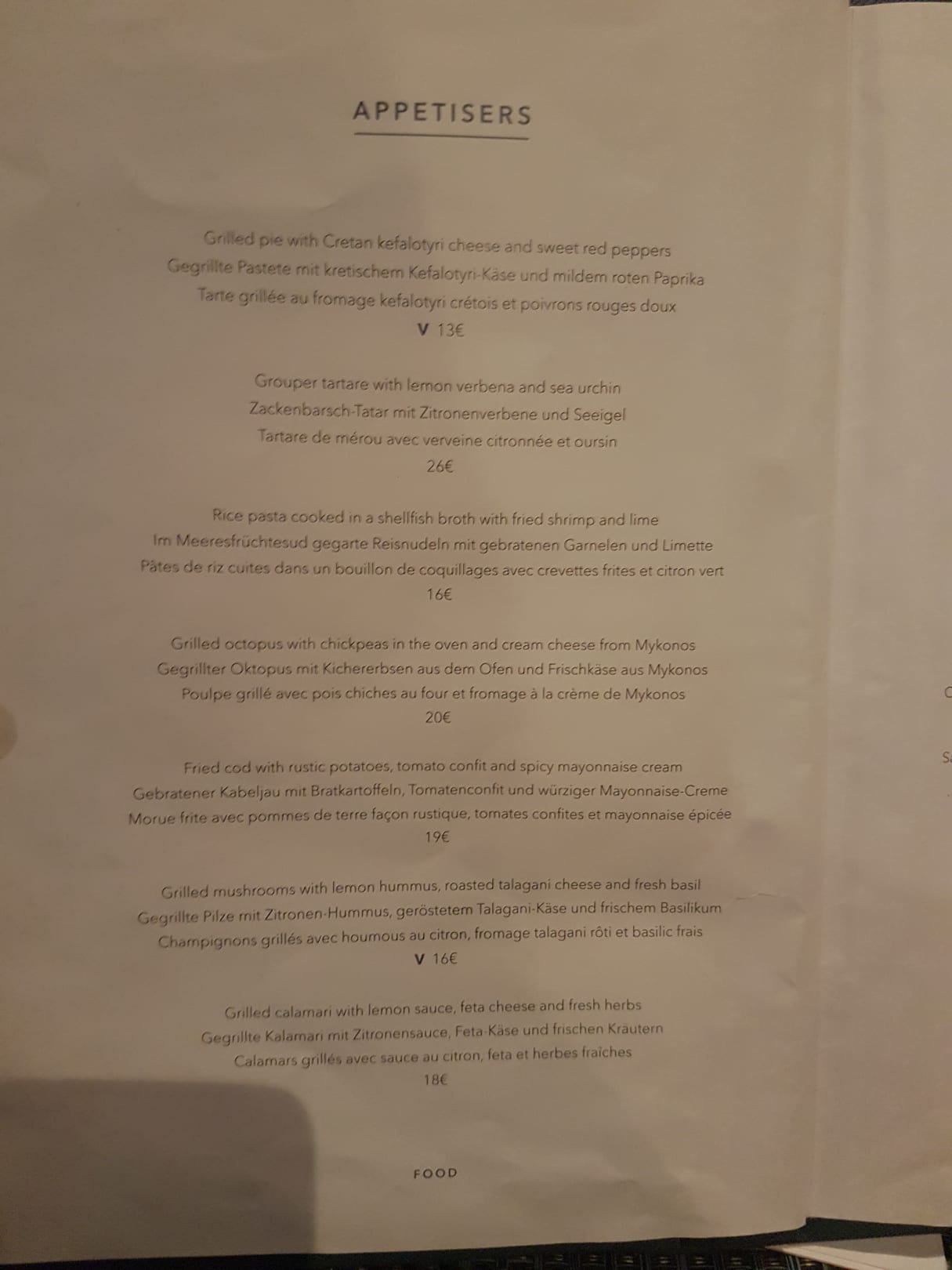 Teil der Speisekarte