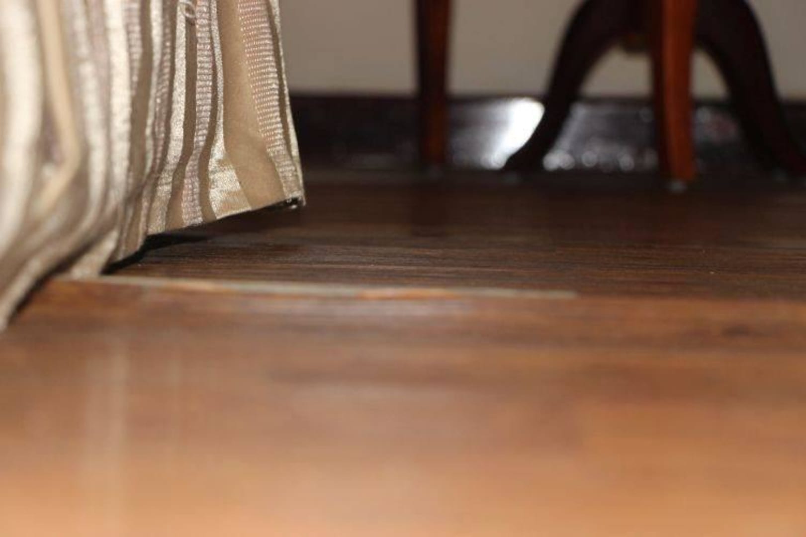Von der Nässe im Zimmer gewellte Bodendielen