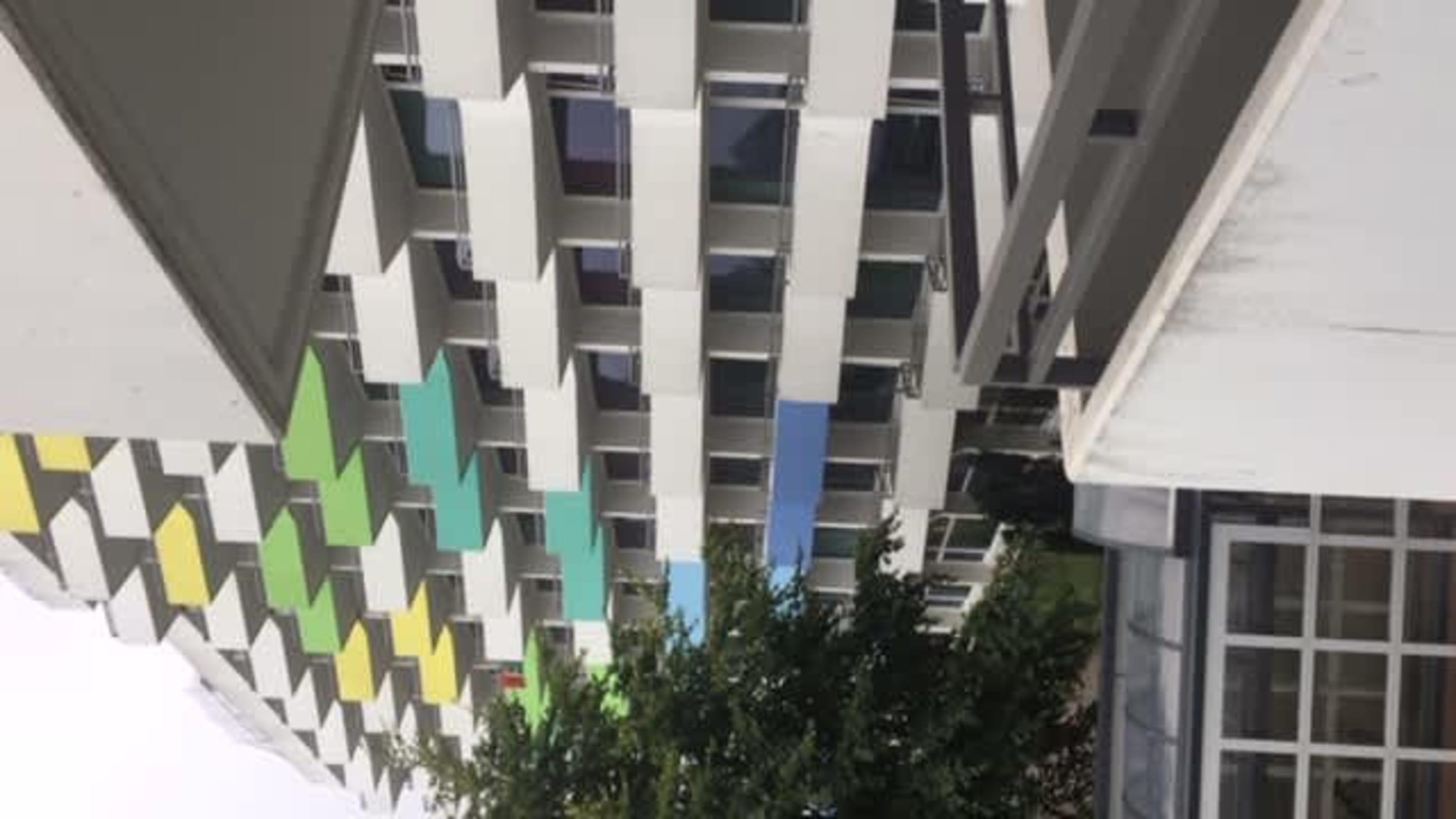 Außenansicht vom Balkon auf das Hotel
