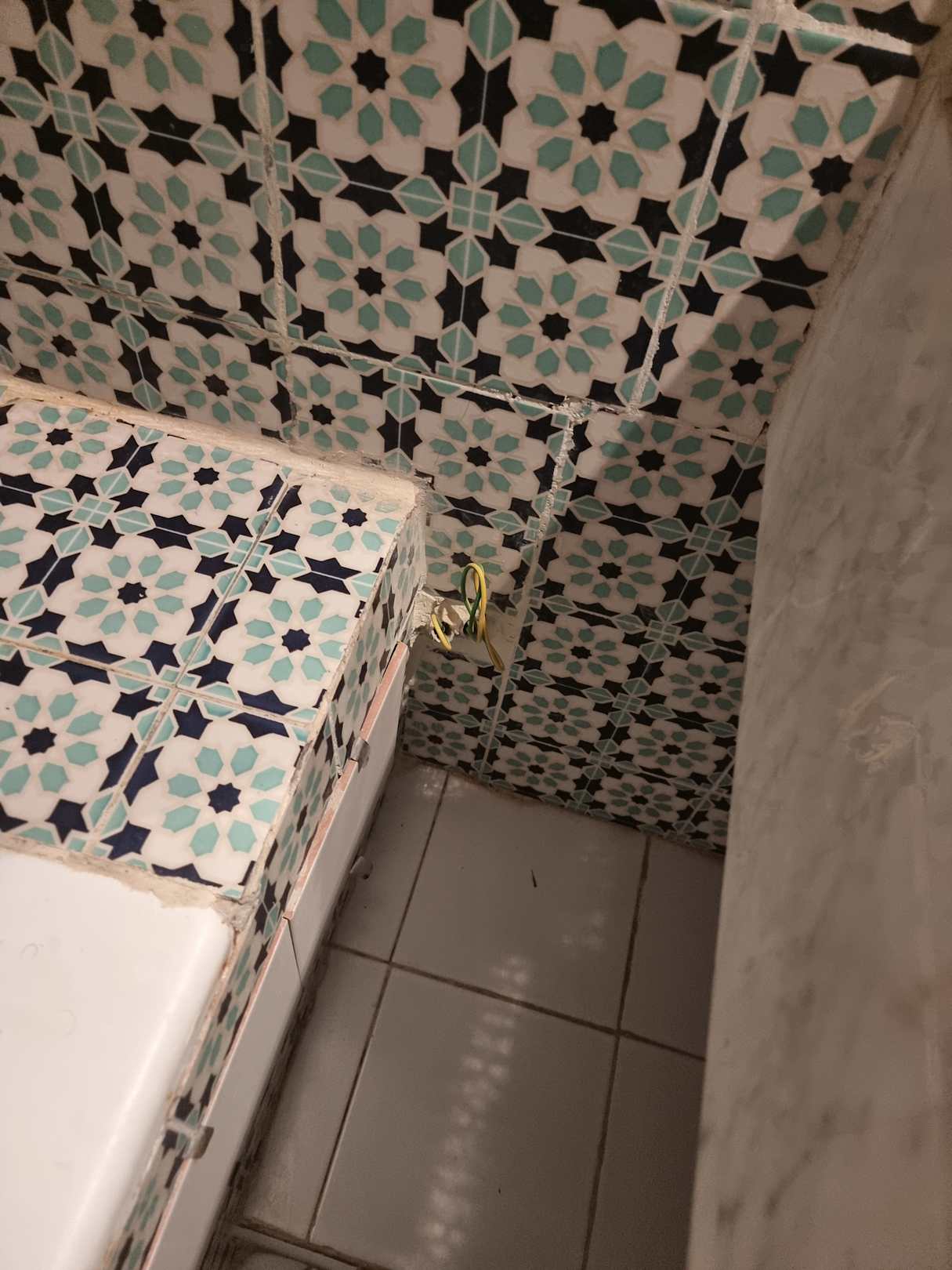 Badezimmer Stromkabel neben zwischen Waschbecken & Badezimmer
