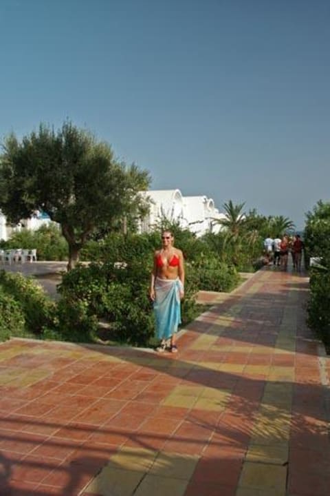 Hotelanlage Yadis Dar KhayamBlick in Richtung Meer. Zu sehen sind die Bungalows rechts und links des Weges.