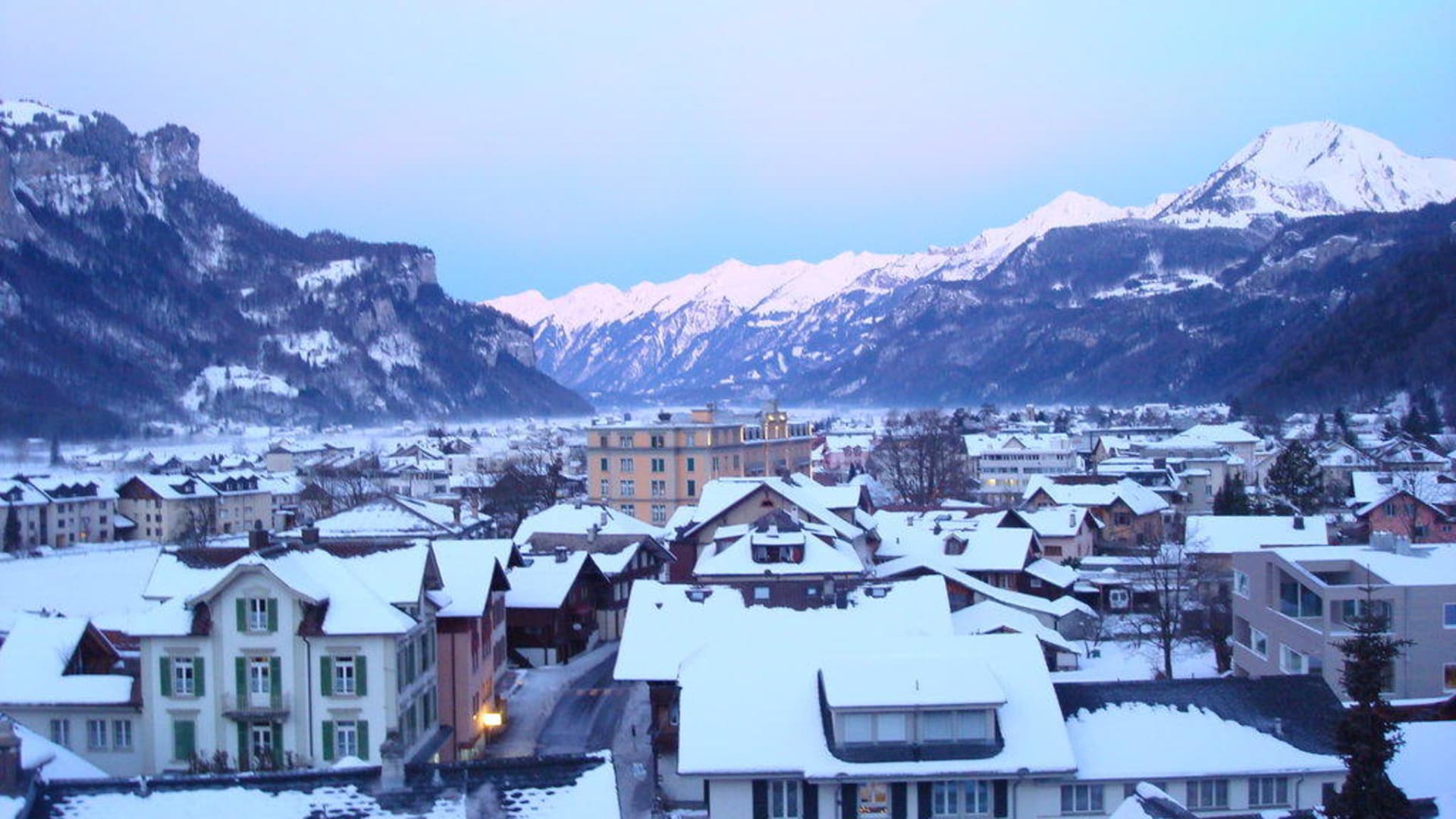 Blick auf MeiringenBlick auf Meiringen im Hintergrund Hotel Sauvage