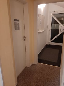 Blick auf die geschlossene Lobby und Ein/Ausgang
