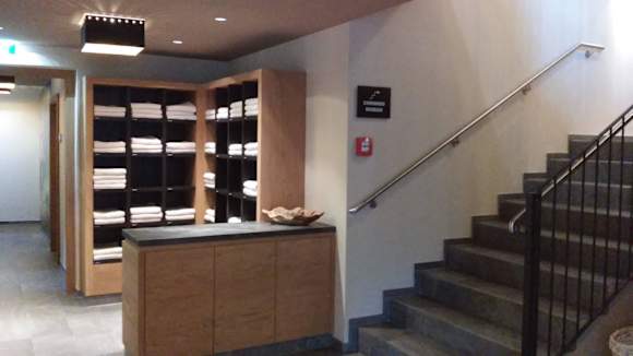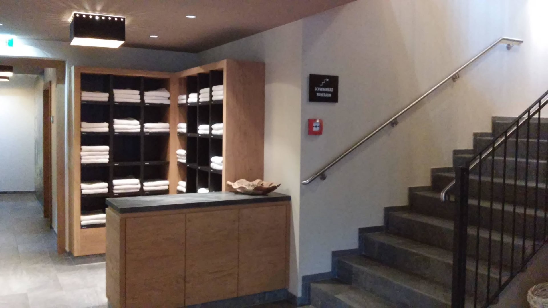 Aufgang zum Naßbereich und Ruheraum.