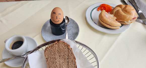 Jedes Frühstücksei wird mit einem Lächeln gebracht