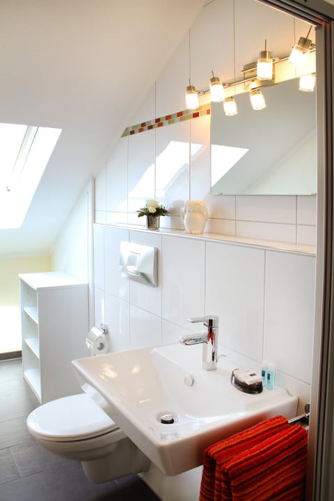Badezimmer vom Doppelzimmer Typ C (Dachgeschoss).