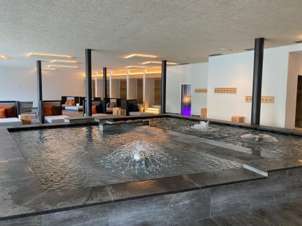 Tolles warmes Kinderbecken mit drei verschiedenen Springbrunnen.