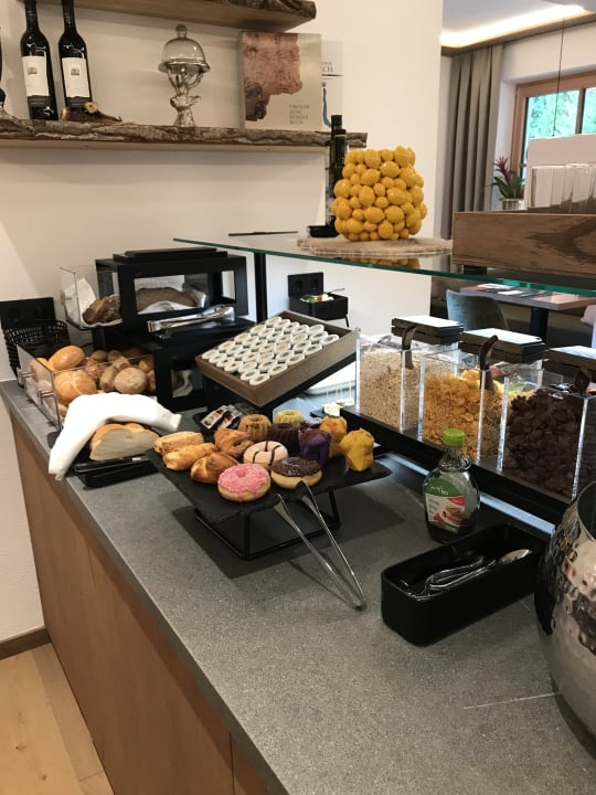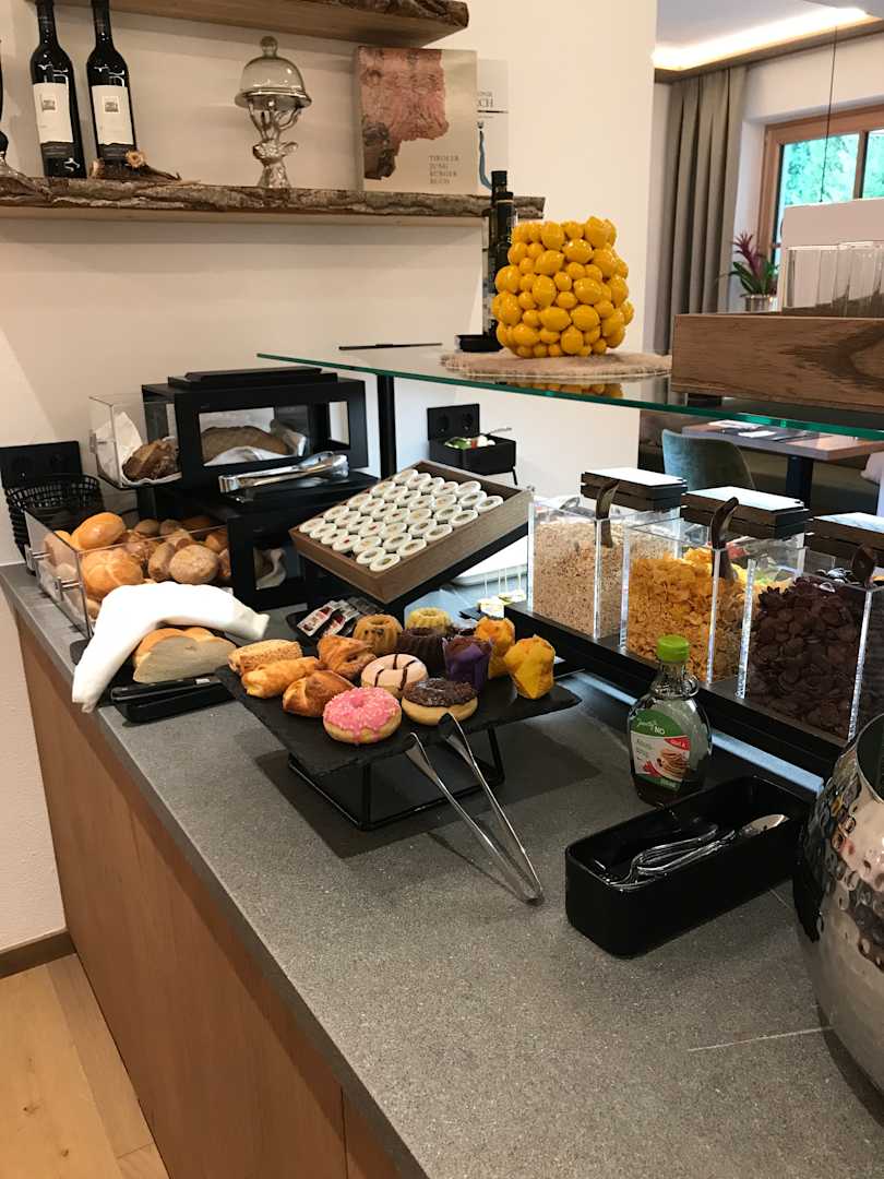 Liebevoll hingerichtetes Frühstücksbuffet. Eierspeisen werden frisch zubereitet!