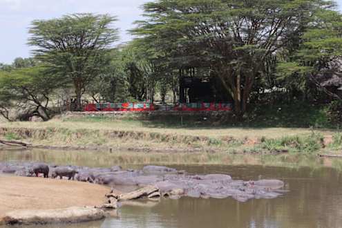 Blick über den Mara River zum Restaurant