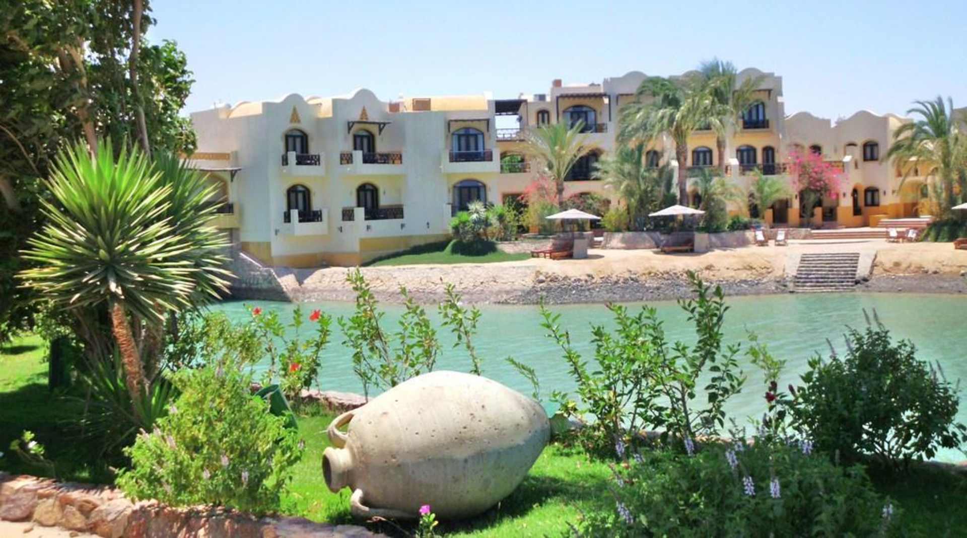 Blick zum Hotelkomplex Lagune