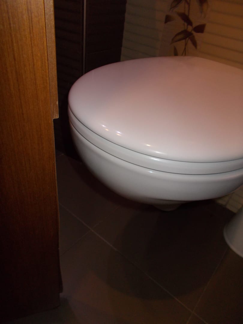 Der WC Raum um ans Waschbecken zu kommen muss man an dem Spalt vorbei zwischen Tür und Klo.