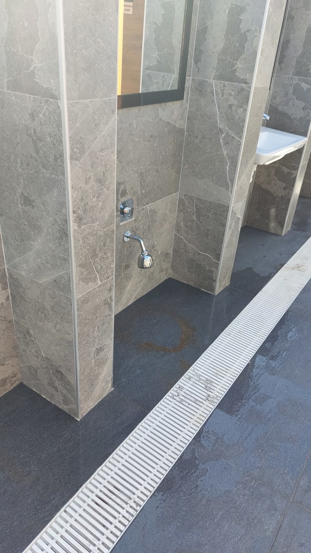 Fußduschen, lediglich der Duschknopf könnte etwas höher angebracht sein.