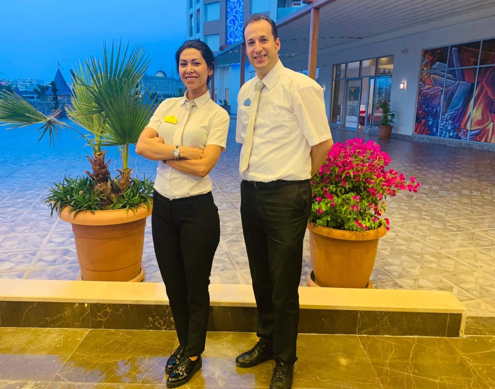 Özlem und Soycan am Hoteleingang