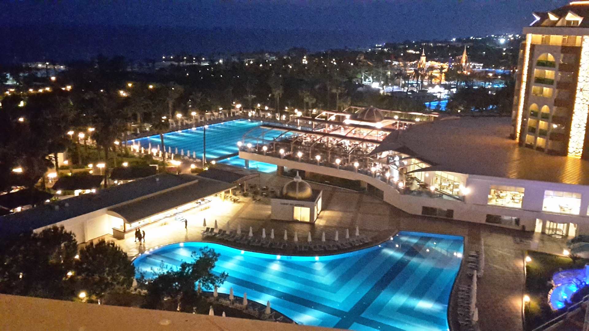 Blick von unserem Meerblickzimmer im 7. Stock auf die Hotelanlage.