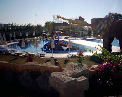 Dieser ist der Kinderpool, die Wasserzufuhr im Pilz war wegen Reinigung abgestellt. Im rechten Hintergrund sind die 3 Rutschen zu sehen.