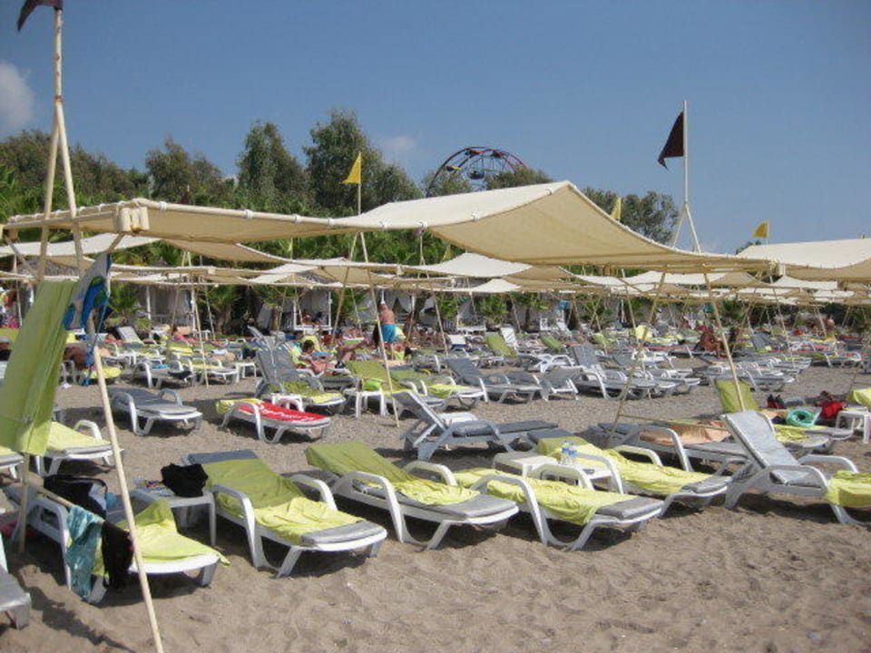 Enggestellte Liegen am Strand