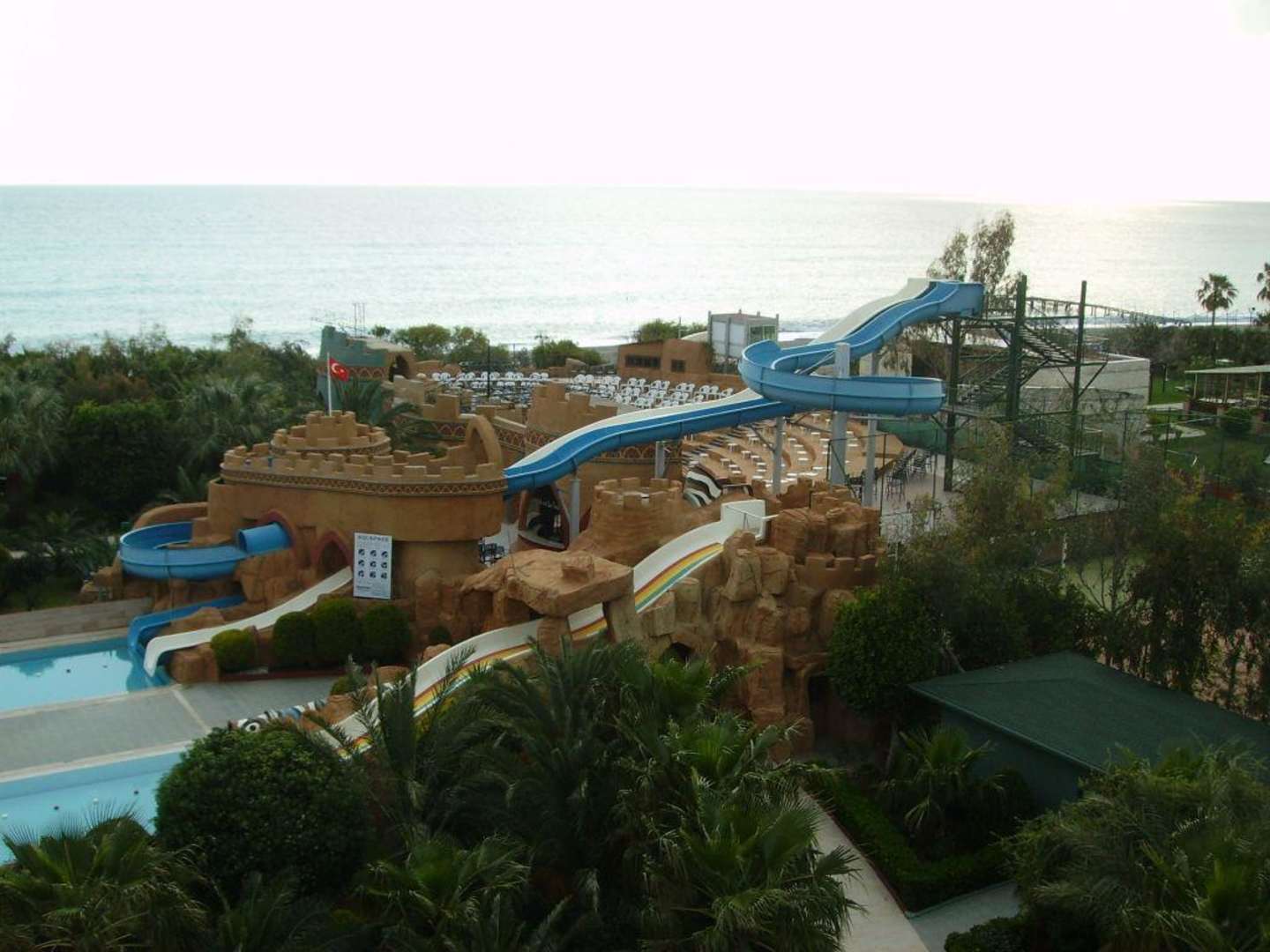 Die 4 Rutschen und das Amphiptheater im Hintergrung