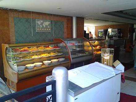 extra Restaurant auf zwei Etagen salat,pizza pommes eis getränke und limitierte warme speisen