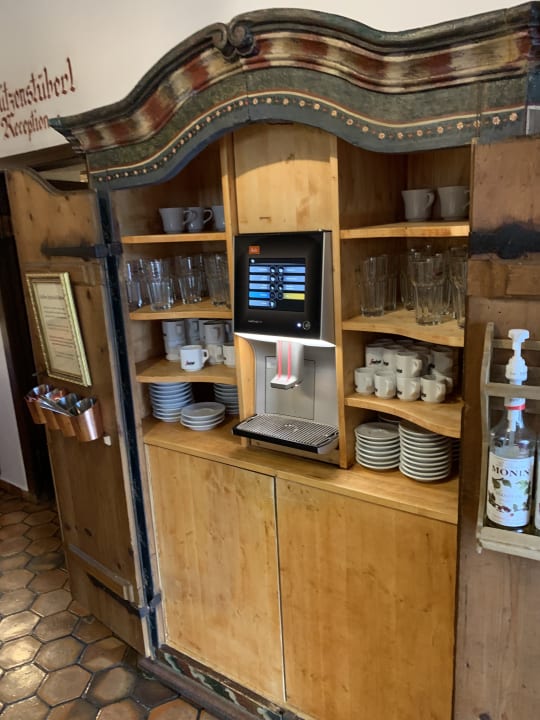 LobbyMit Liebe zum Detail, die Kaffeemaschine beim Frühstück, auch Sirup mit verschiedenen Geschmacksrichtungen ist vorhanden