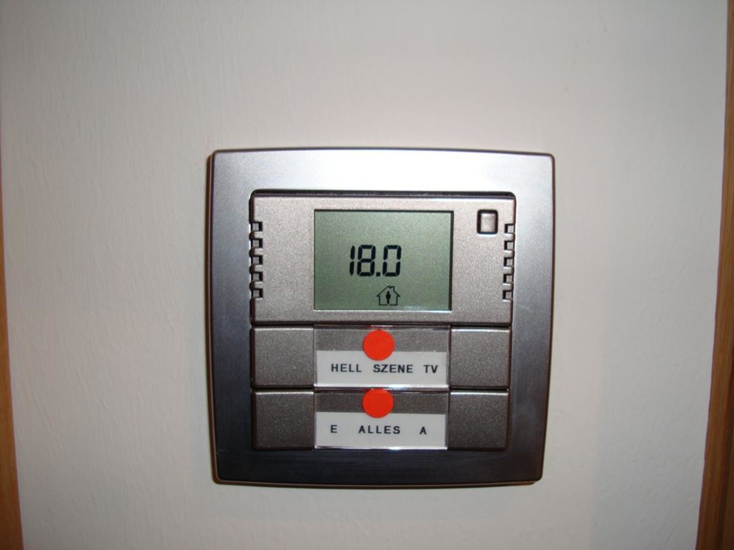 Steuereinheit für Licht und HeizungSie sehen die Steuereinheit für Licht und Heizung mit der programmierten Einstellung für "anwesend" von 18° Grad