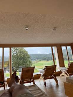Blick aus dem Wellnessbereich/Ruheraum Mitte Oktober