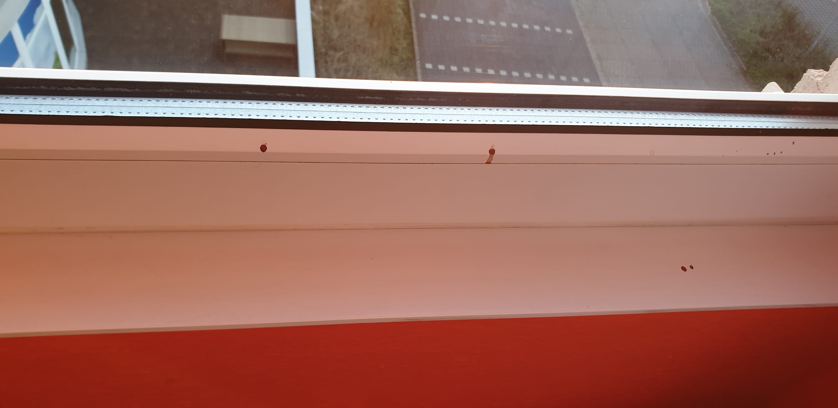 Blut auf Fensterbank und Fenster.