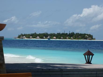 Blick von der Bar zur Schwesterinsel Banyan Tree