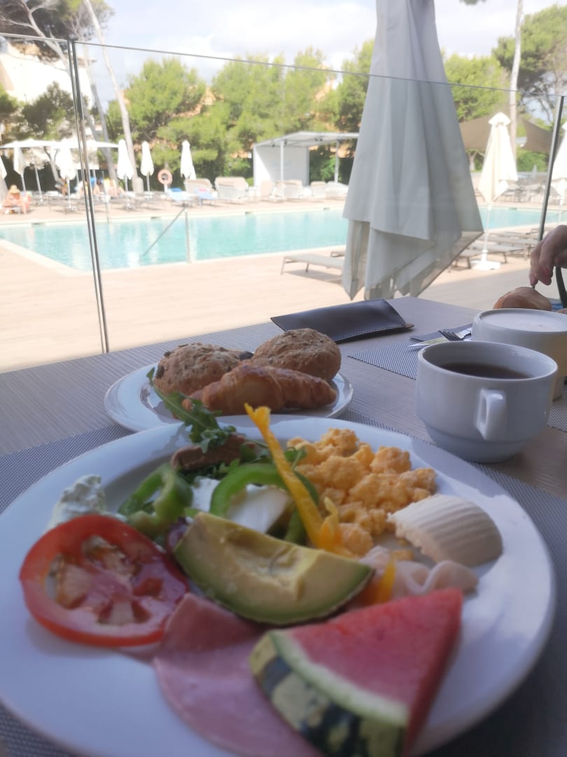 Frühstück mit Aussicht auf Pool